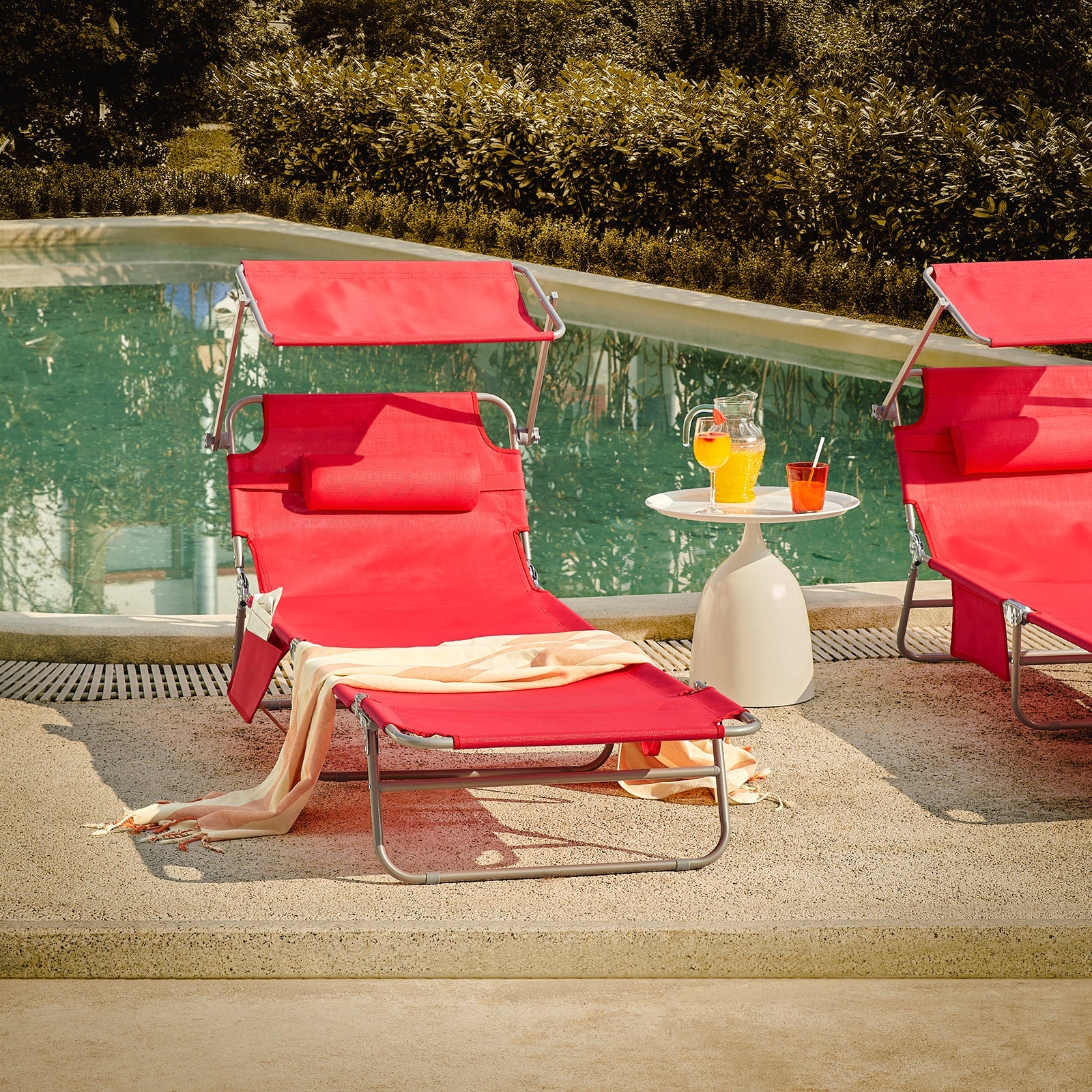 Liggestol med indbygget parasol, L195 x B63 x H90 cm, rød